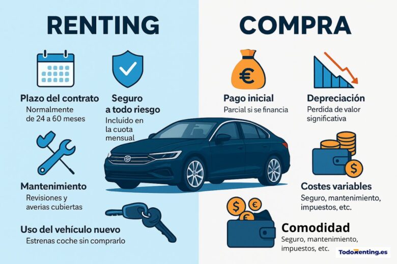 Ahora que entendemos ambos modelos, enfrentémoslos directamente. Esta comparativa de coche renting o compra te ayudará a ver qué opción se alinea mejor con tus prioridades.