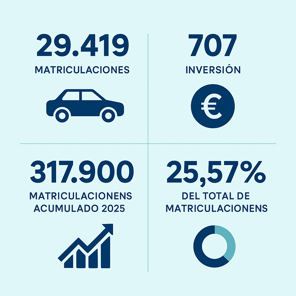 Mayo 2025: Las matriculaciones de coches en España alcanzan las 112.820 unidades, marcando un crecimiento del 18,6%