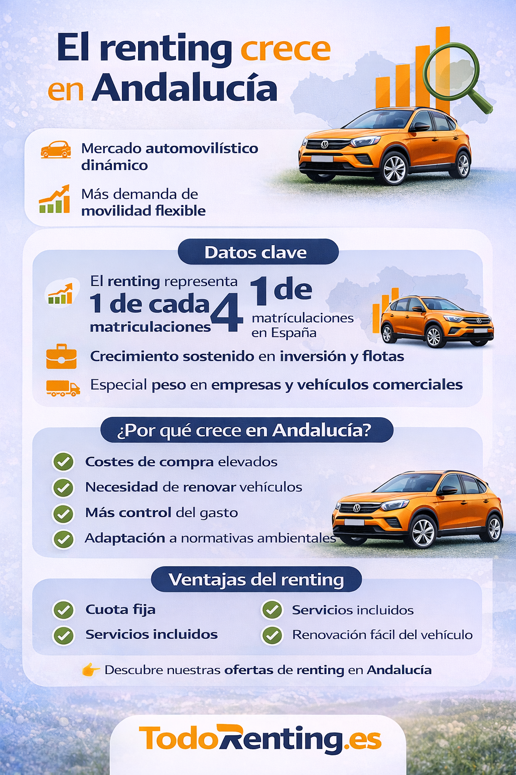 Aunque las estadísticas detalladas por comunidad autónoma todavía son escasas, las señales del mercado andaluz —crecimiento de la segunda mano, dinamismo regional y mayor conciencia sobre costes y emisiones— apuntan a que el renting seguirá creciendo en 2026 y más allá.
